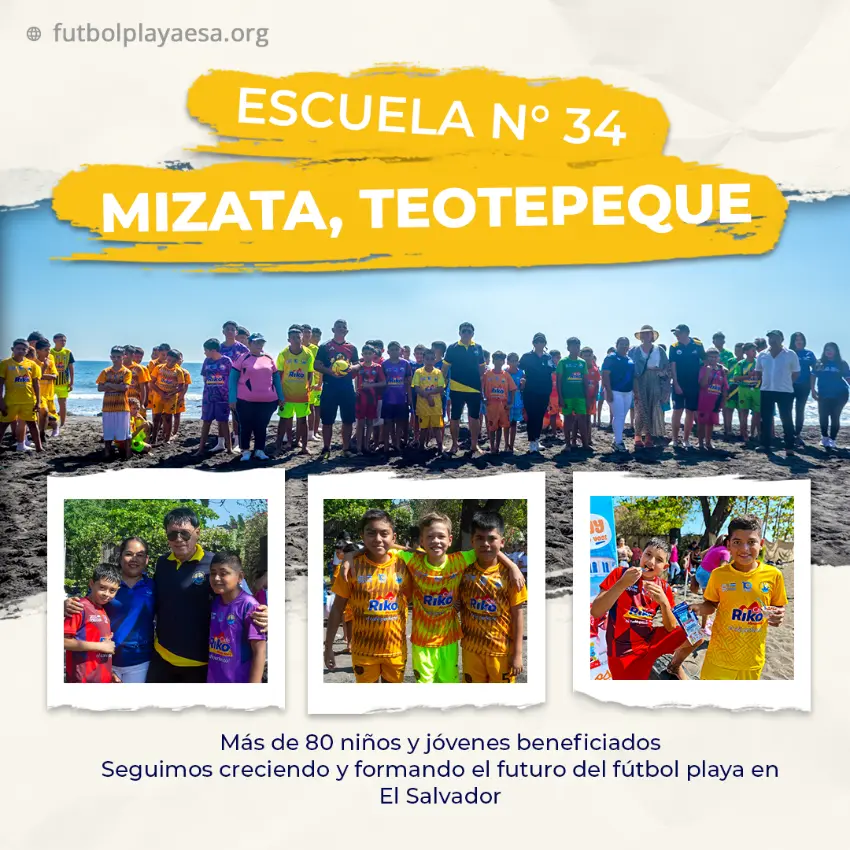 El pasado viernes 09 de mayo del 2025 se inauguró la Escuela de Fútbol Playa #33 en municipio de Acajutla, en el departamento de Sonsonate, dicha apertura dejo a más de 100 niños y jóvenes beneficiados...